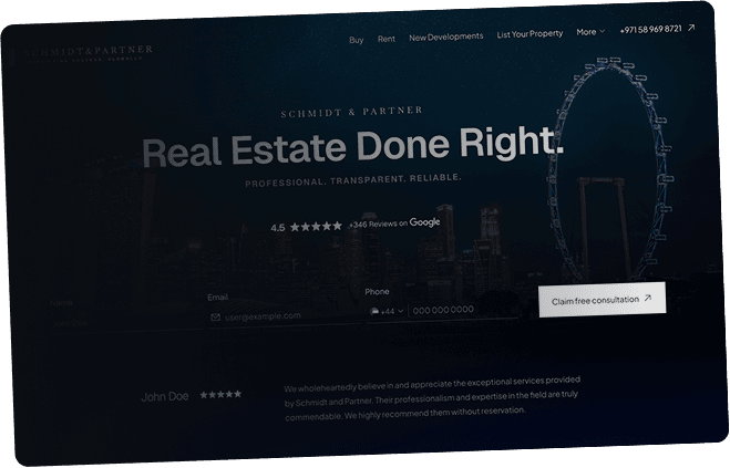 Operating as a solo agent in Dubai’s ultra-competitive real estate market requires more than listings and social media posts. Tobias needed a digital platform that could establish trust instantly and convert interest into conversations.