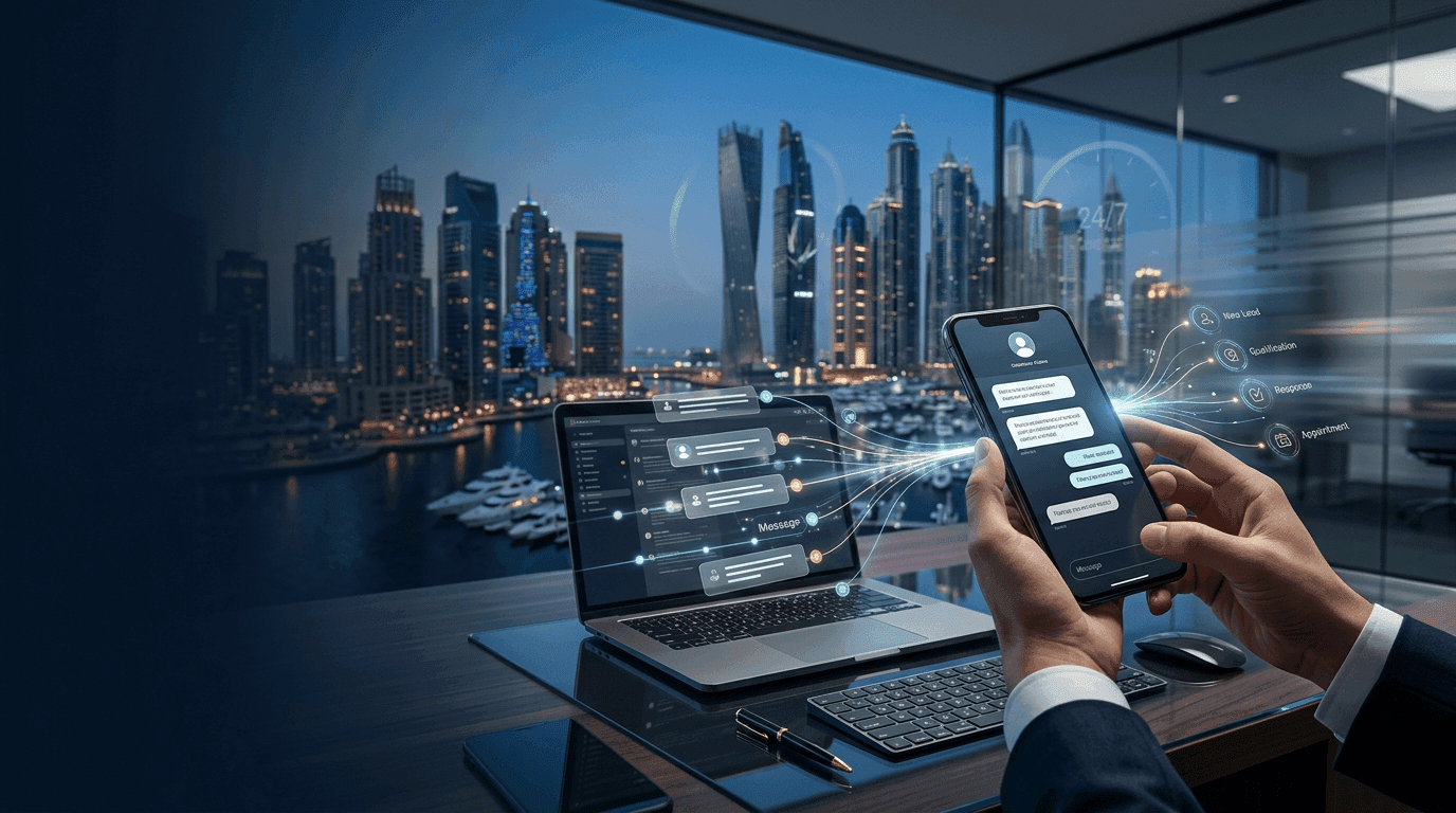 In Dubai, response time is a conversion lever—especially for off-plan launches, prime communities, and investor-driven demand. We deploy AI real estate lead generation + nurturing flows that answer inquiries immediately, handle FAQs, share availability, and guide the prospect to the next action. Your team stops firefighting and starts closing—while the AI covers nights, weekends, and peak campaign spikes.